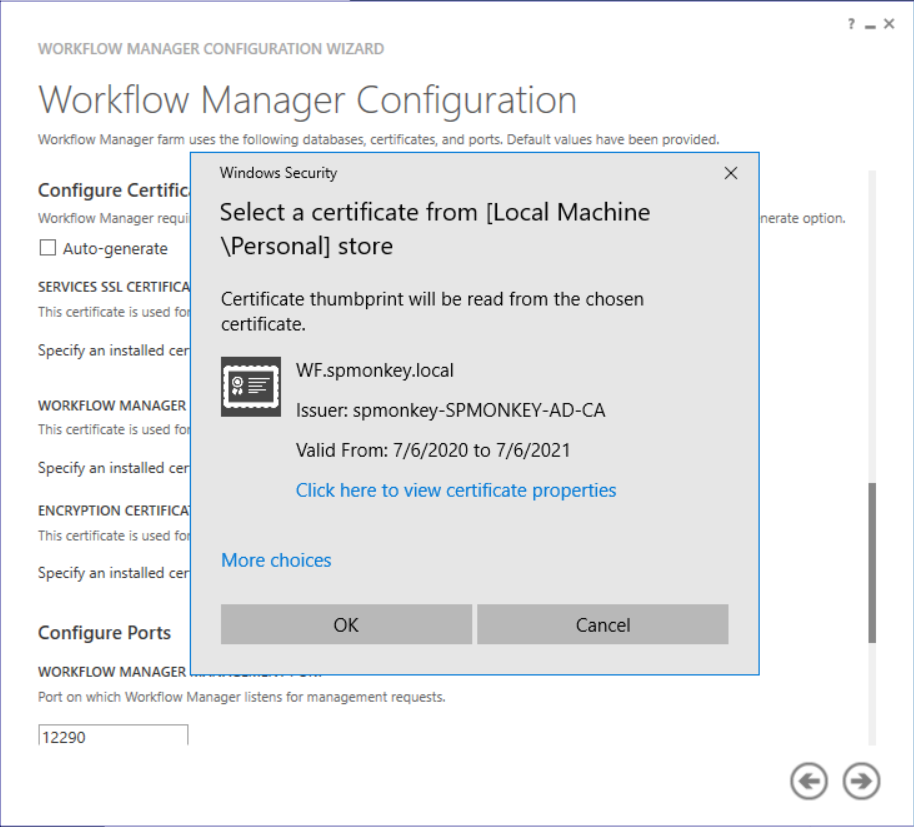 - Check and make sure you see the new Workflow certificate added.