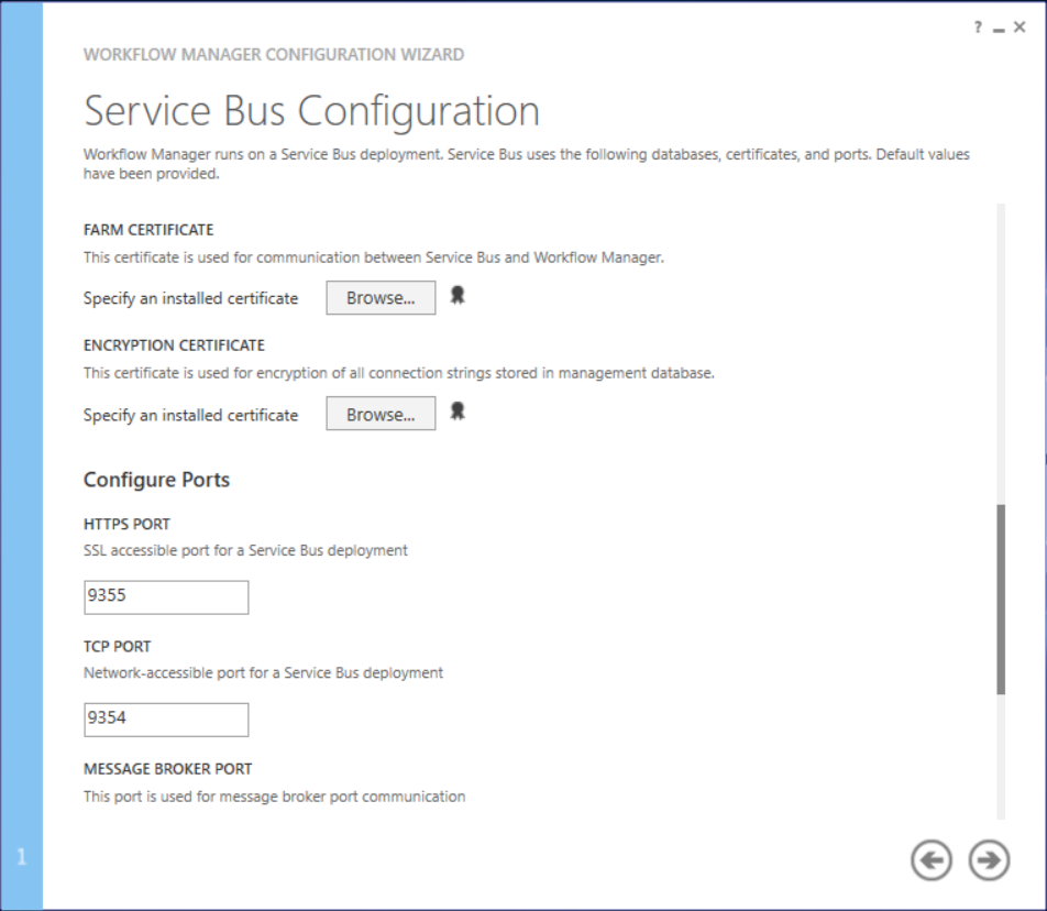Select and Enter information for Service Bus Configuration